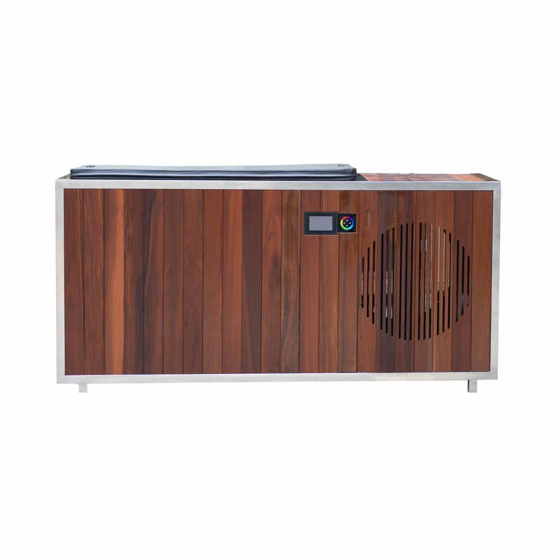 De HQ-WSC-DR koude duikkuip is ontworpen voor professionele omgevingen die maximale duurzaamheid, functionaliteit en en hygiëne. Met een gewicht van 280 kg combineert dit versterkte cedermodel dikke, stabiele houten panelen met een versterkte 304 roestvrijstalen voering, die langdurige prestaties garandeert bij continu gebruik en extreme temperatuurcycli.